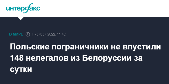 Москва. 1 ноября. INTERFAX.RU - За минувшие сутки нелегально пересечь белорусско-польскую границу попытались 148 человек, в том числе граждане Сирии, Ирака и Конго, сообщила Пограничная стража Польши.