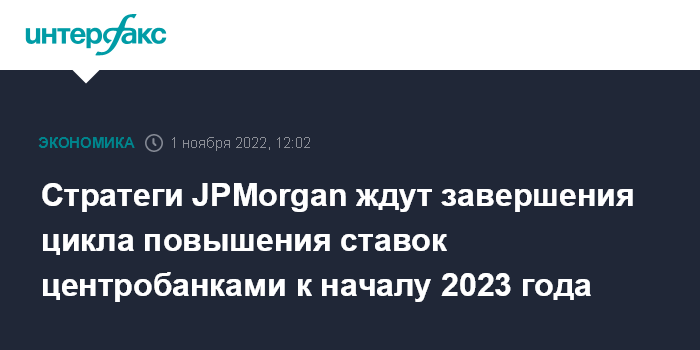Стратеги JPMorgan ждут завершения цикла повышения ставок центробанками к началу 2023 года