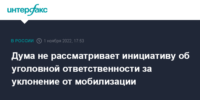Вместе с тем парламентарии отметили, что "инициатива о введении ответственности за уклонение от военной службы в период мобилизации, действительно, рассматривалась в самом начале объявления частичной мобилизации".
