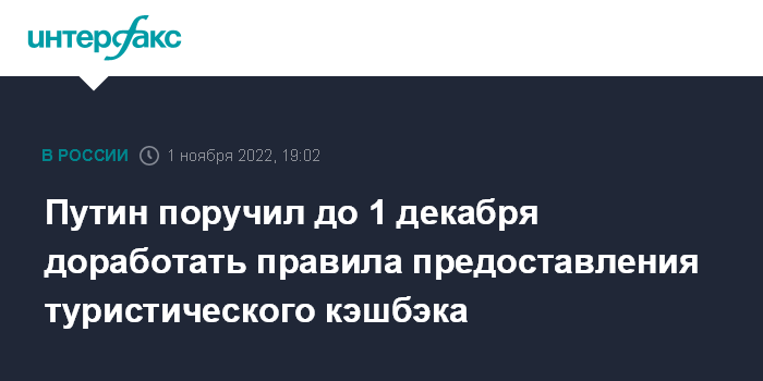Путин поручил до 1 декабря доработать правила предоставления туристического кэшбэка