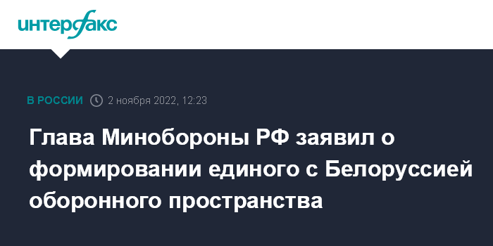 "Продолжаем формировать единое оборонное пространство. Принята общая военная доктрина, ведётся совместное военное планирование, функционируют региональные группировки войск, а также единая система противовоздушной обороны", - сказал Шойгу в ходе совместной коллегии военных ведомств двух стран.