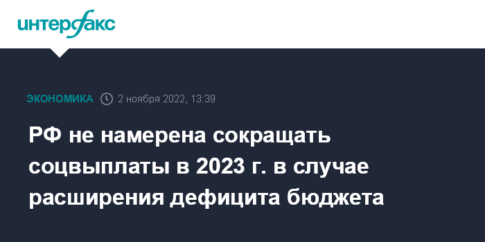 РФ не намерена сокращать соцвыплаты в 2023 г. в случае расширения дефицита бюджета