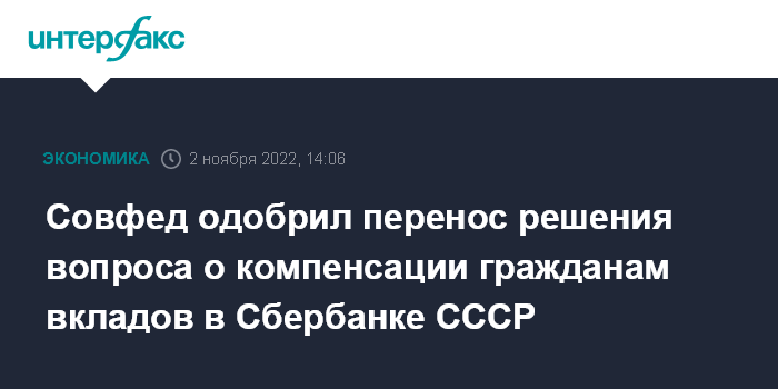 Совфед одобрил перенос решения вопроса о компенсации гражданам вкладов в Сбербанке СССР