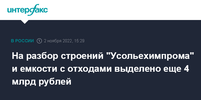 На разбор строений "Усольехимпрома" и емкости с отходами выделено еще 4 млрд рублей