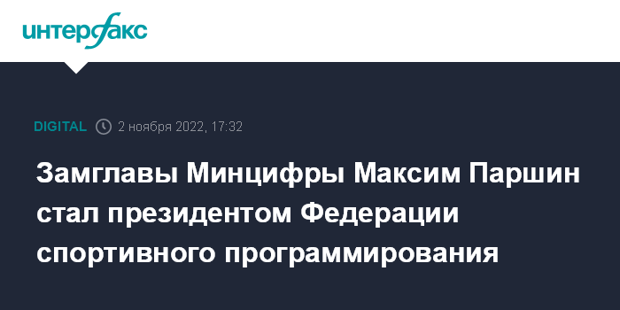 Замглавы Минцифры Максим Паршин стал президентом Федерации спортивного программирования