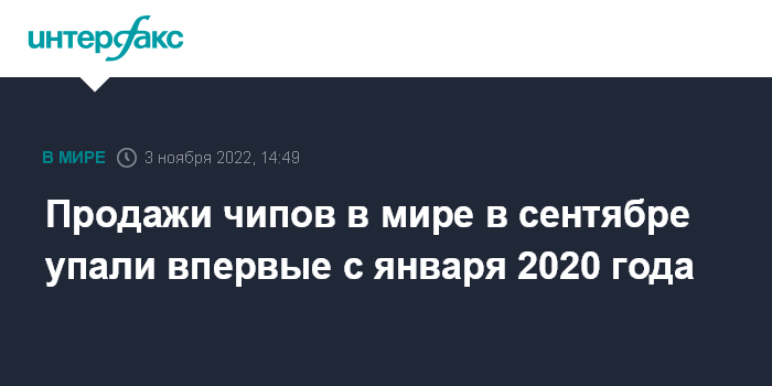 Продажи чипов в мире в сентябре упали впервые с января 2020 года