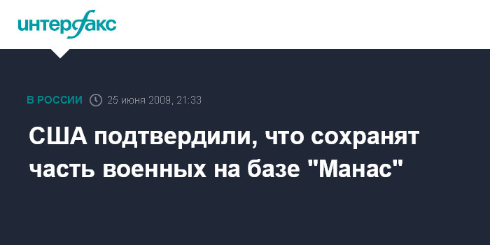 Вашингтон.25 июня. INTERFAX.RU - Некоторое американское военное присутствие на базе "Манас" в Киргизии будет сохраняться для обеспечения транспортировки грузов в Афганистан.