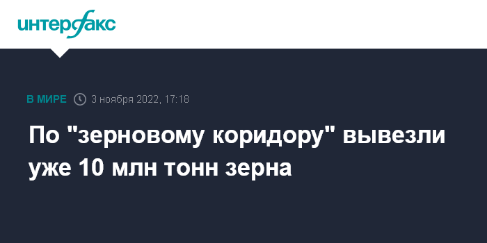 "Я рад сообщить, что сегодня инициатива достигла новой отметки: 10 млн тонн зерна и других продуктов питания было перевезено через черноморский коридор", - заявил Гутерриш в четверг. Он отметил, что на это потребовалось всего три месяца.