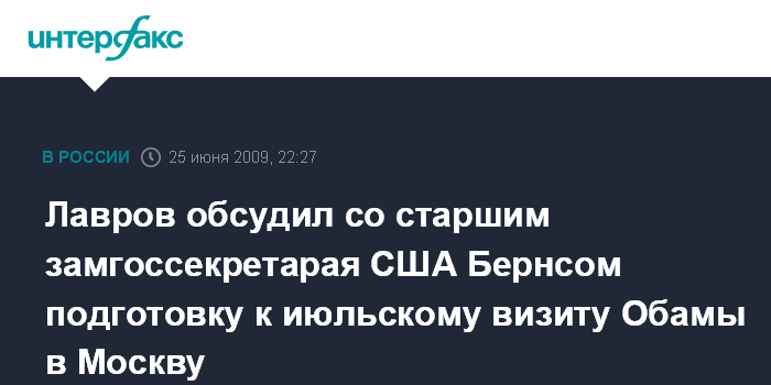 Лавров обсудил со старшим замгоссекретарая США Бернсом подготовку к июльскому визиту Обамы в Москву