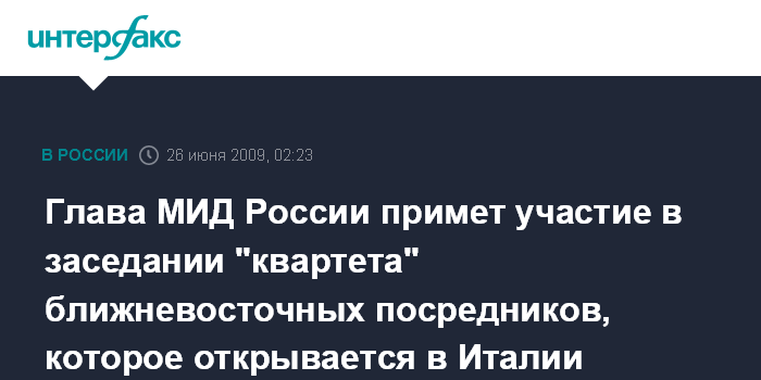 Глава МИД России примет участие в заседании "квартета" ближневосточных посредников, которое открывается в Италии