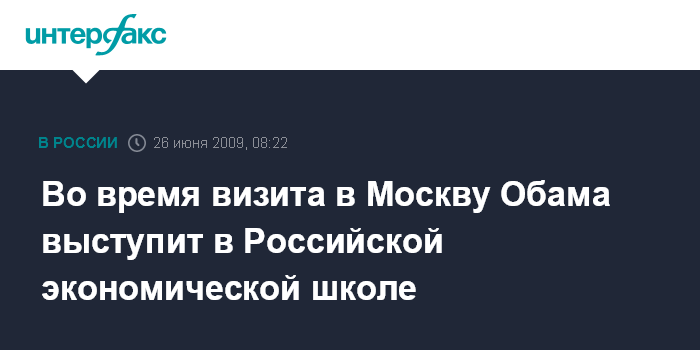 Москва. 26 июня. INTERFAX.RU - Президент США Барак Обама во время визита в Москву выступит с речью 7 июля в Российской экономической школе, сообщил на брифинге в Белом доме пресс-секретарь Роберт Гиббс. Как отметил пресс-секретарь, эта речь станет возможностью для Обамы обсудить сферы общих интересов между США и Россией в таких областях, как нераспространение, глобальная безопасность и экономический рост.