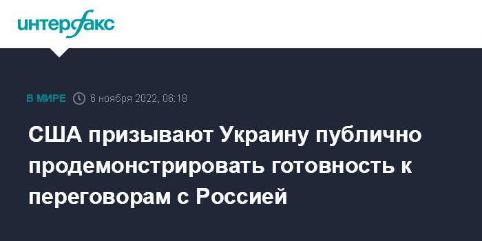 США призывают Украину публично продемонстрировать готовность к переговорам с Россией