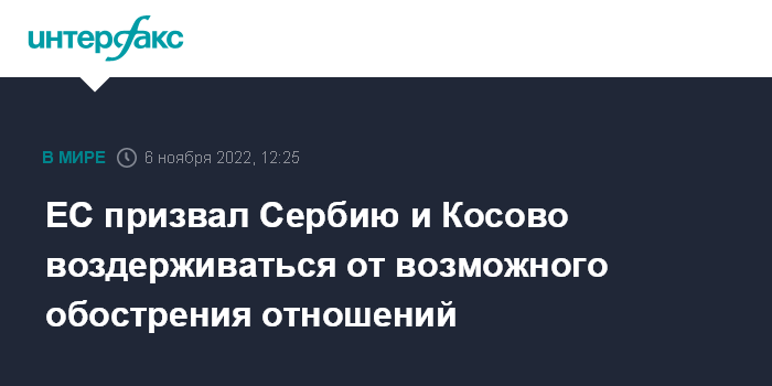 ЕС призвал Сербию и Косово воздерживаться от возможного обострения отношений
