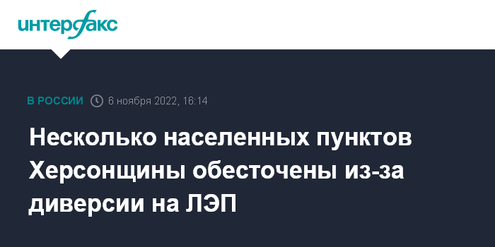 Несколько населенных пунктов Херсонщины обесточены из-за диверсии на ЛЭП