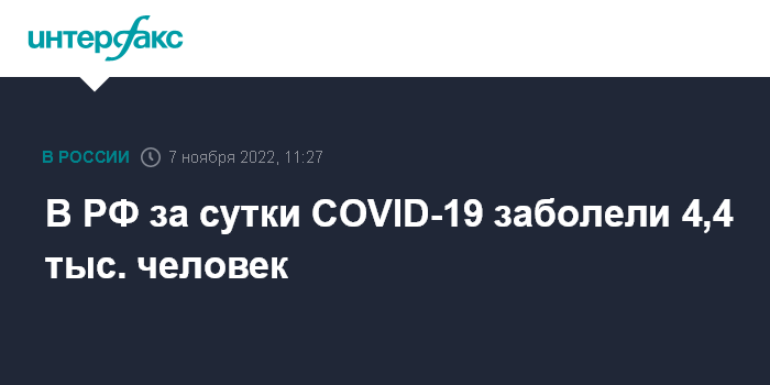 В РФ за сутки COVID-19 заболели 4,4 тыс. человек