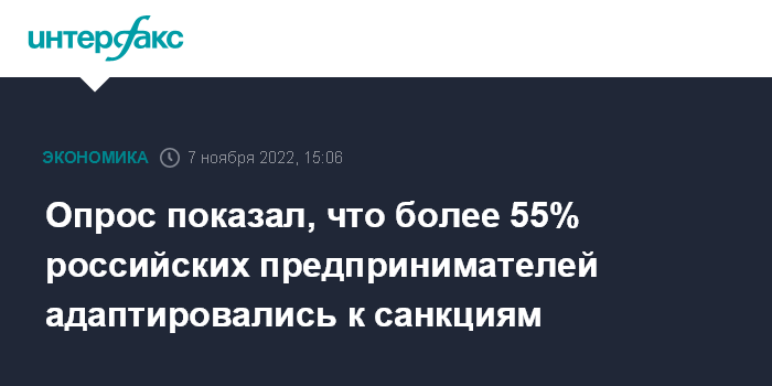 Опрос показал, что более 55% российских предпринимателей адаптировались к санкциям