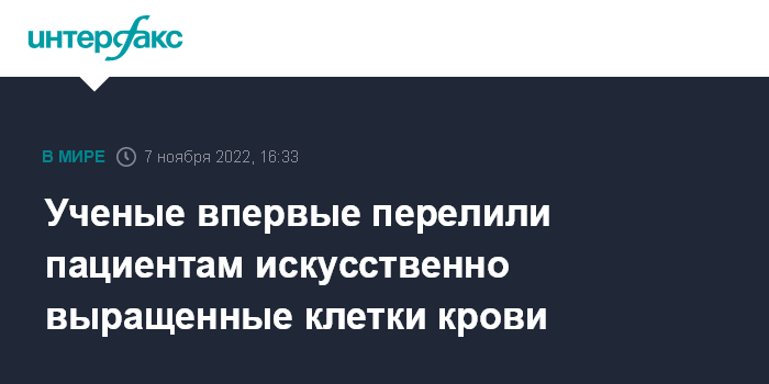 Это первый случай в мире, когда эритроциты, выращенные в лаборатории, были перелиты человеку в рамках исследования.