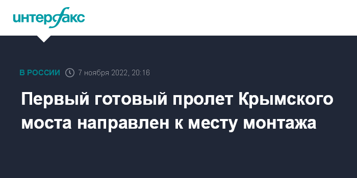 Москва. 7 ноября. INTERFAX.RU - Строители приступили в понедельник к транспортировке первого готового пролета Крымского моста к месту монтажа, сообщил вице-премьер РФ Марат Хуснуллин.