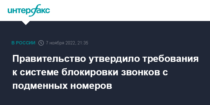 Москва. 7 ноября. INTERFAX.RU - Правительство РФ утвердило требования к системе блокировки звонков и sms с подменных номеров "Антифрод" и правила ее функционирования. Соответствующее постановление опубликовано на портале правовой информации.