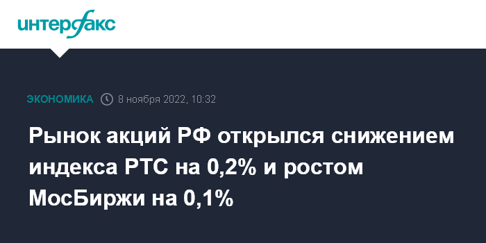 Рынок акций РФ открылся снижением индекса РТС на 0,2% и ростом МосБиржи на 0,1%
