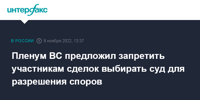 Пленум ВС предложил запретить участникам сделок выбирать суд для разрешения споров
