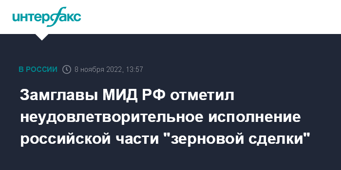 Замглавы МИД РФ отметил неудовлетворительное исполнение российской части "зерновой сделки"
