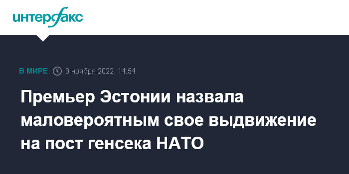 Москва. 8 ноября. INTERFAX.RU - Премьер-министр Эстонии Кая Каллас (Kaja Kallas) считает, что ей не предложат возглавить НАТО.