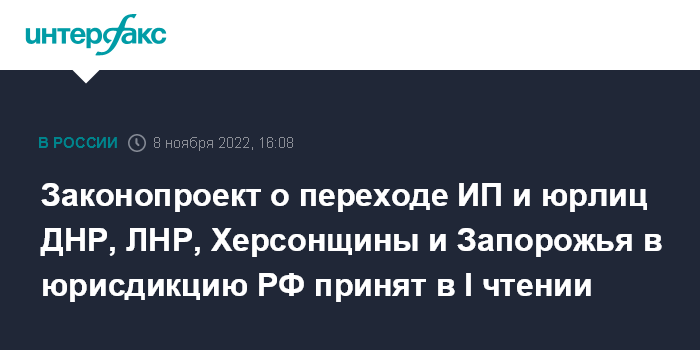 Законопроект о переходе ИП и юрлиц ДНР, ЛНР, Херсонщины и Запорожья в юрисдикцию РФ принят в I чтении