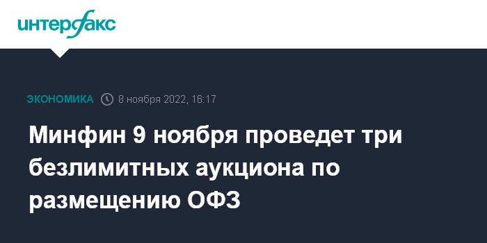 Минфин 9 ноября проведет три безлимитных аукциона по размещению ОФЗ