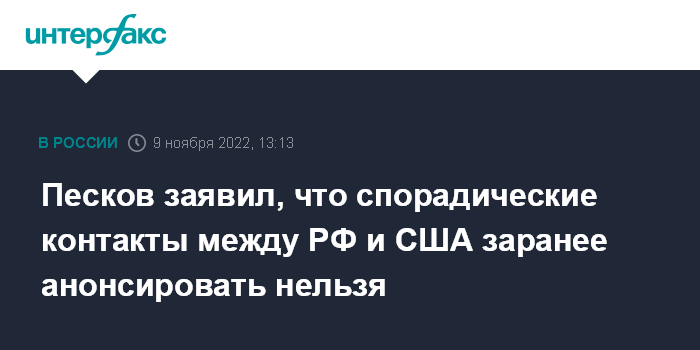 Москва. 9 ноября. INTERFAX.RU - Пресс-секретарь президента РФ Дмитрий Песков заявил, что нежелательно заранее анонсировать спорадические контакты с США.
