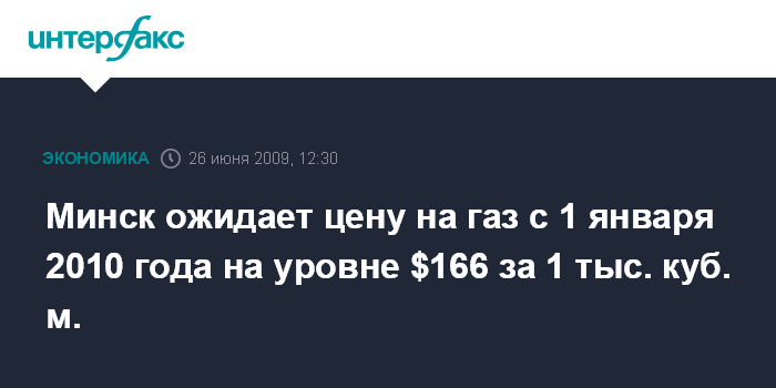 Минск ожидает цену на газ с 1 января 2010 года на уровне $166 за 1 тыс. куб. м.