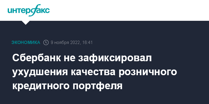 Сбербанк не зафиксировал ухудшения качества розничного кредитного портфеля