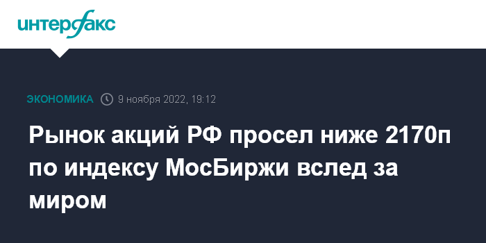 По словам инвестиционного стратега компании "БКС Мир инвестиций" Александра Бахтина, рынок акций РФ просел на фоне ухудшения внешних настроений и отката нефти от недельных максимумов, поскольку не нашли подтверждения ожидания, что Китай готов смягчить свою политику "нулевой терпимости" к COVID-19. Лучше рынка выглядели акции золотодобытчиков, отыгрывавших рост цен на золото.