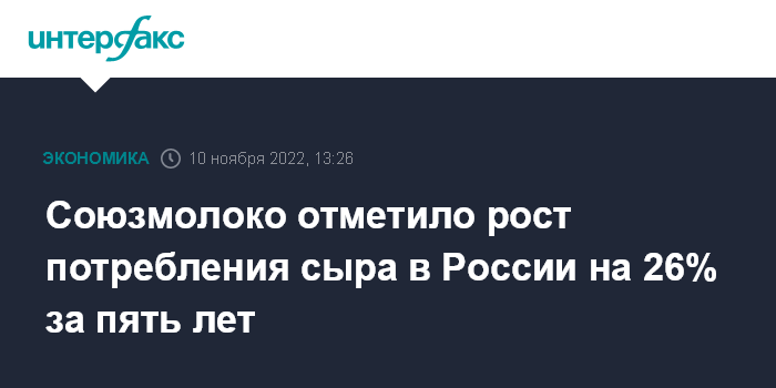 Москва. 10 ноября. INTERFAX.RU - Сыр стал самым динамично растущим сегментом потребления в России за последние пять лет, сообщил гендиректор "Национального союза производителей молока" (Союзмолоко) Артем Белов на III съезде Сибирского союза производителей и переработчиков молока в Новосибирского агрофорума.