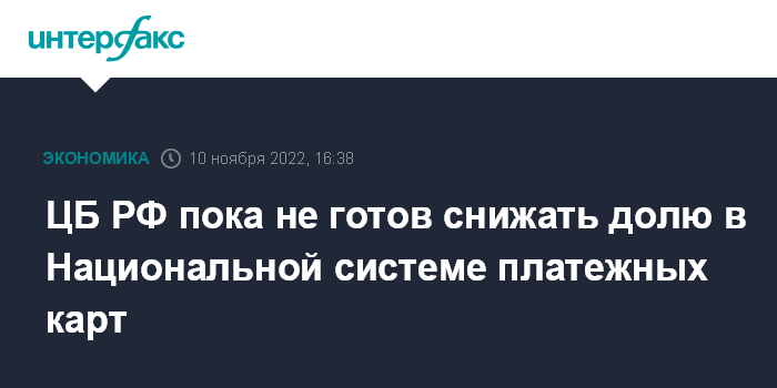 ЦБ РФ пока не готов снижать долю в Национальной системе платежных карт