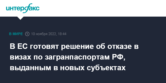 В ЕС готовят решение об отказе в визах по загранпаспортам РФ, выданным в новых субъектах
