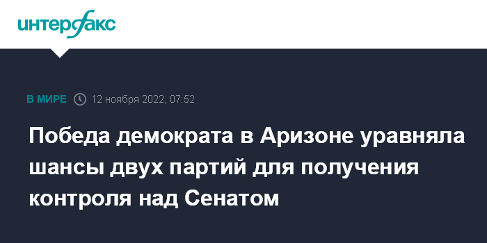 По состоянию на утро субботы по московскому времени, с победой в Аризоне шансы демократов и республиканцев на выборах в Сенат уравнялись: кандидаты от обеих партий завоевали по 49 мест.