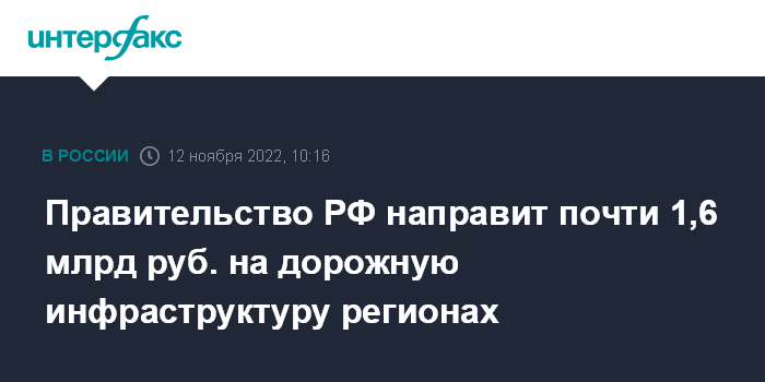 Правительство РФ направит почти 1,6 млрд руб. на дорожную инфраструктуру регионах