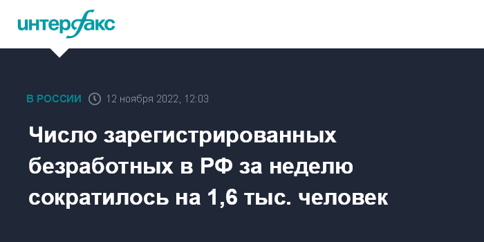 Число зарегистрированных безработных в РФ за неделю сократилось на 1,6 тыс. человек
