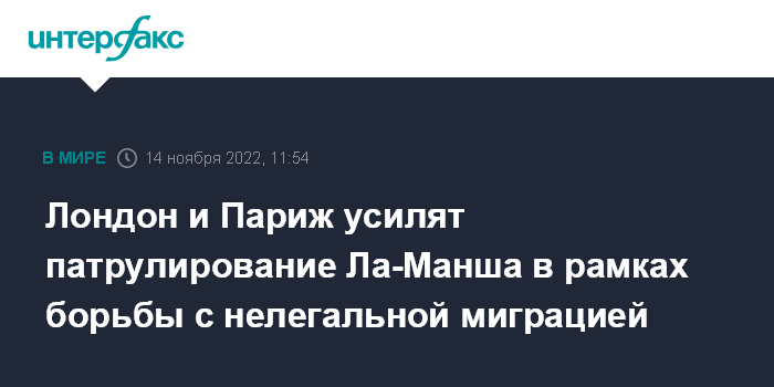 Москва. 14 ноября. INTERFAX.RU - Министр внутренних дел Великобритании Суэлла Браверман и ее французский коллега Жеральд Дарманен в понедельник заключили соглашение, которым предусматривается расширение сотрудничества по борьбе с нелегальной миграцией через пролив Ла-Манш, сообщает The Guardian.