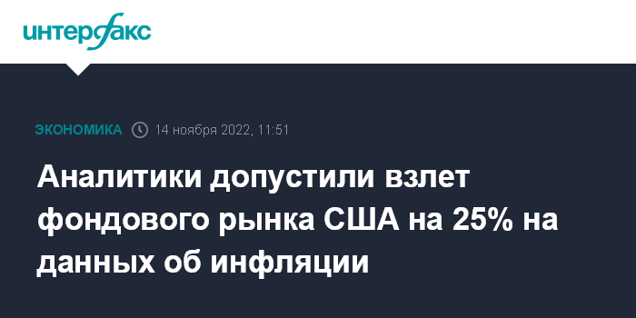 Москва. 14 ноября. INTERFAX.RU - Свежие статданные о динамике потребительских цен в США в октябре, оказавшиеся лучше ожиданий, могут указывать на поворотный момент в борьбе Федеральной резервной системы США с высокой инфляцией и привести к существенному подъему фондового рынка, полагают эксперты Fundstrat. Об этом сообщает MarketWatch.