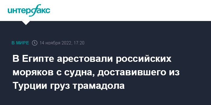 В Египте арестовали российских моряков с судна, доставившего из Турции груз трамадола