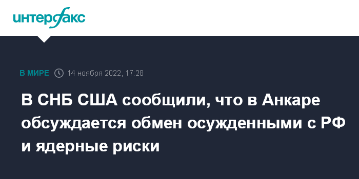 В СНБ США сообщили, что в Анкаре обсуждается обмен осужденными с РФ и ядерные риски