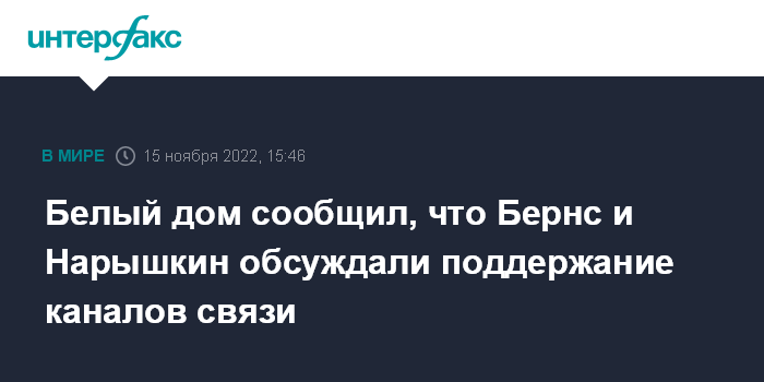 14 ноября CNN со ссылкой на представителя Совета нацбезопасности США сообщил, что Бернс и Нарышкин также обсуждали ситуацию с отбывающими заключение в России американскими гражданами и "ядерные риски".