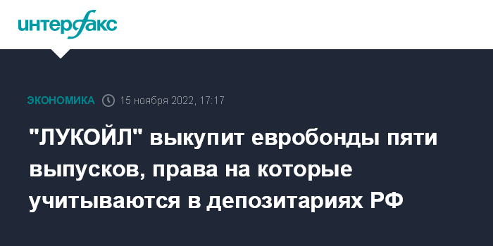 "ЛУКОЙЛ" выкупит евробонды пяти выпусков, права на которые учитываются в депозитариях РФ