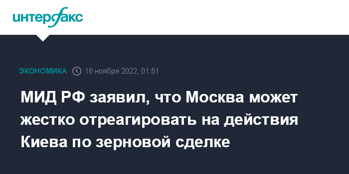 МИД РФ заявил, что Москва может жестко отреагировать на действия Киева по зерновой сделке