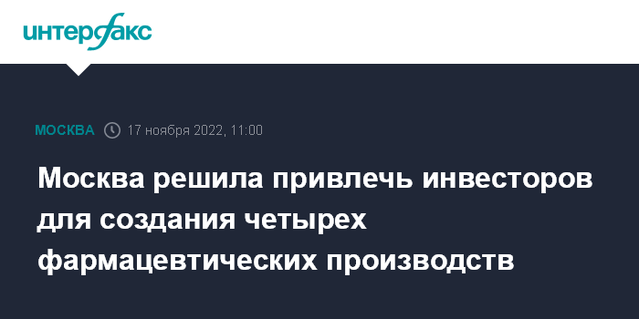 Москва решила привлечь инвесторов для создания четырех фармацевтических производств