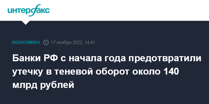 Банки РФ с начала года предотвратили утечку в теневой оборот около 140 млрд рублей