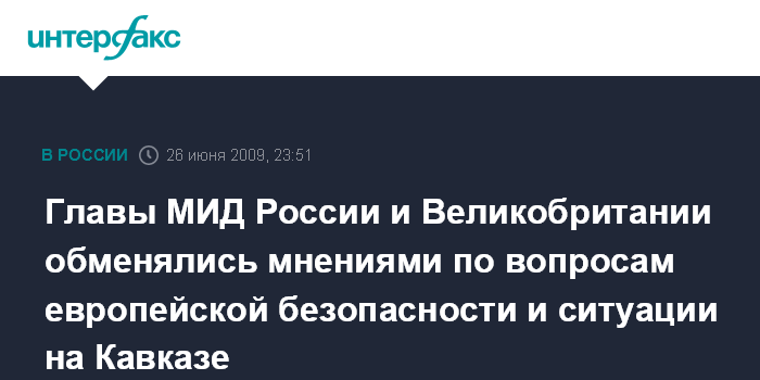 Главы МИД России и Великобритании обменялись мнениями по вопросам европейской безопасности и ситуации на Кавказе