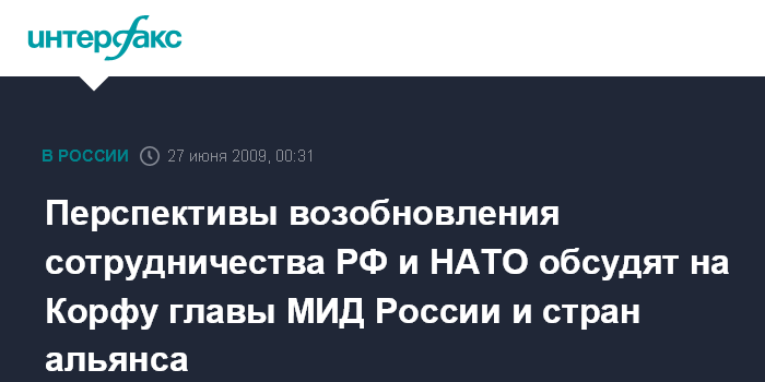 Корфу (Греция). 27 июня. ИНТЕРФАКС - Неформальная встреча министров иностранных дел стран Совета Россия-НАТО (ИСРН) пройдет в субботу на греческом острове Корфу.